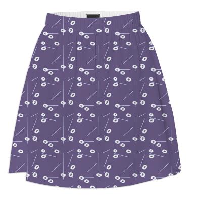 Basic short a-line skirt with a nice drape elastic waistband and side seam pockets.