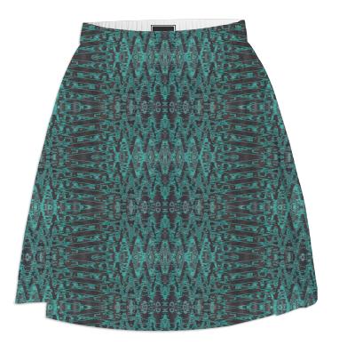 Basic short a-line skirt with a nice drape elastic waistband and side seam pockets.