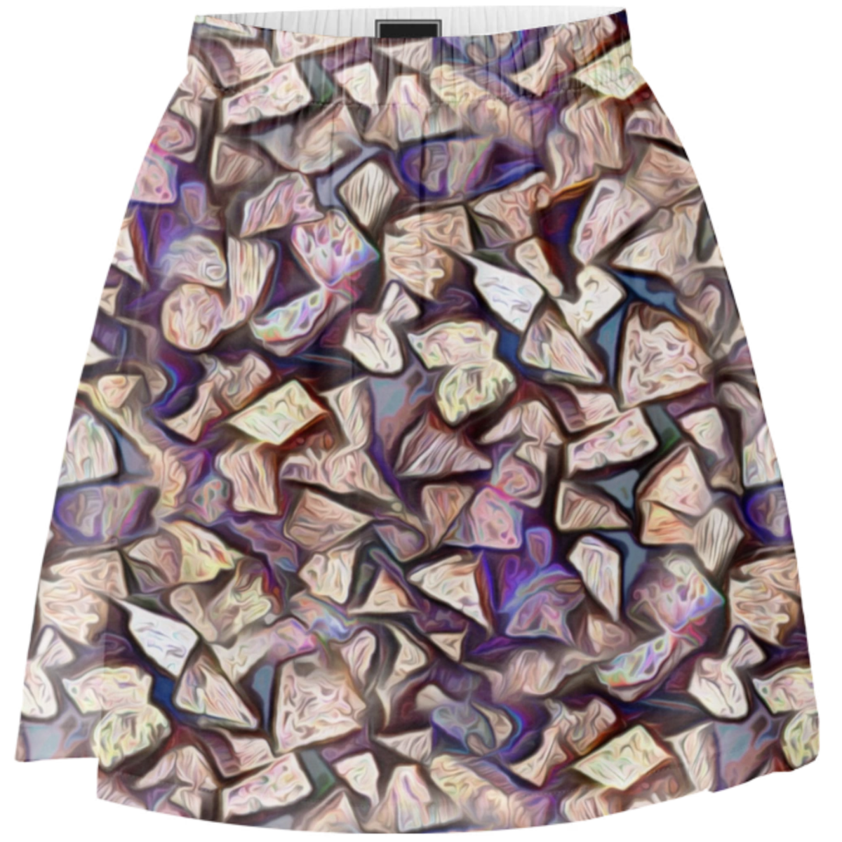 Basic short a-line skirt with a nice drape elastic waistband and side seam pockets.