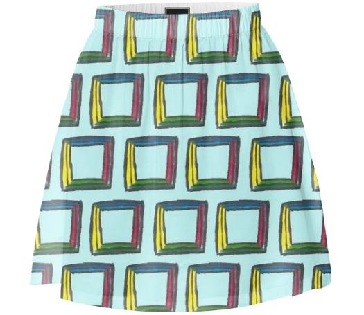 Basic short a-line skirt with a nice drape elastic waistband and side seam pockets.