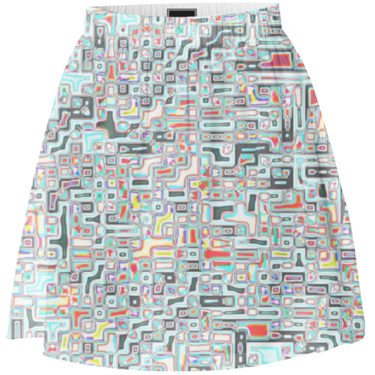 Basic short a-line skirt with a nice drape elastic waistband and side seam pockets.