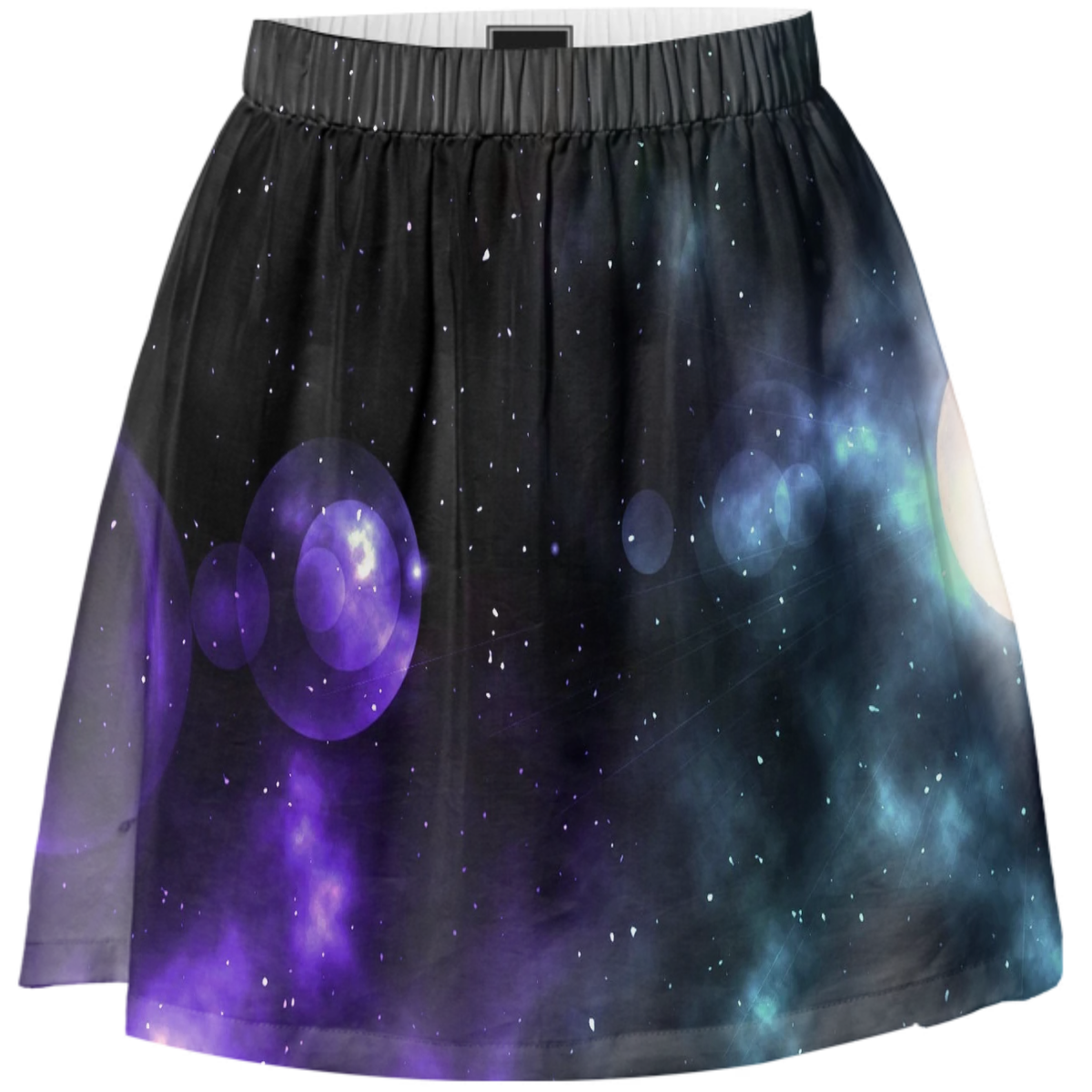Basic short a-line skirt with a nice drape elastic waistband and side seam pockets.