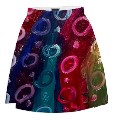 Basic short a-line skirt with a nice drape elastic waistband and side seam pockets.