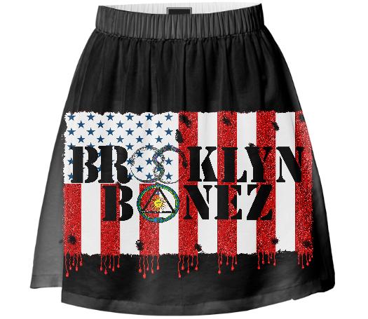 Basic short a-line skirt with a nice drape elastic waistband and side seam pockets.
