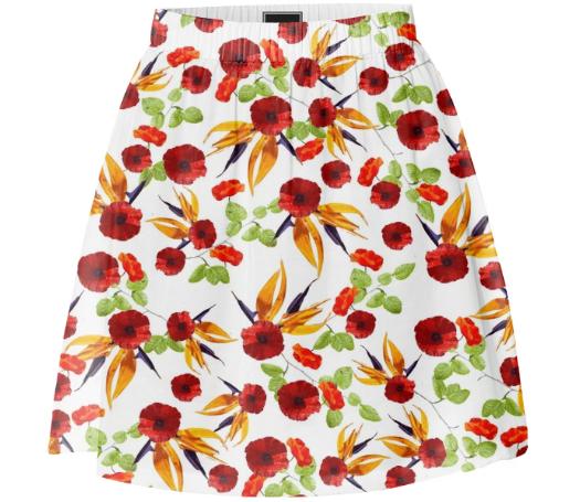 Basic short a-line skirt with a nice drape elastic waistband and side seam pockets.