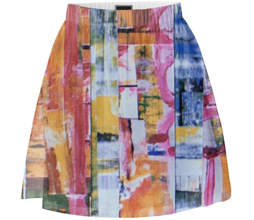 Basic short a-line skirt with a nice drape elastic waistband and side seam pockets.