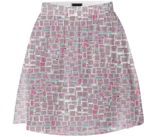 Basic short a-line skirt with a nice drape elastic waistband and side seam pockets.