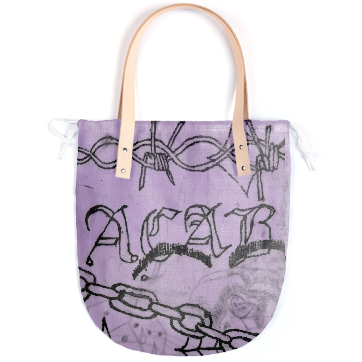 The Summer tote features a round bottom shape small inside patch pocket and tan or black leather handles.