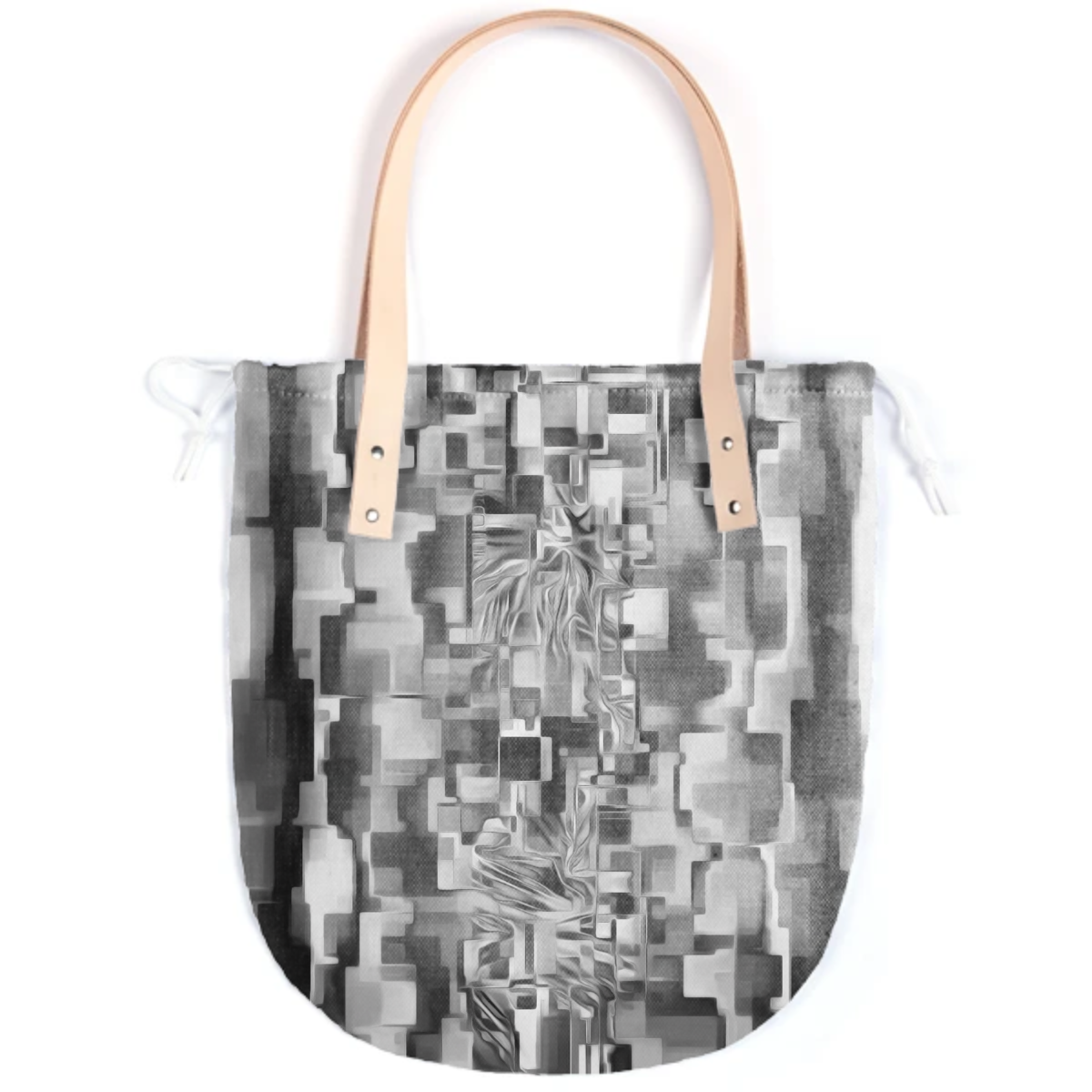 The Summer tote features a round bottom shape small inside patch pocket and tan or black leather handles.