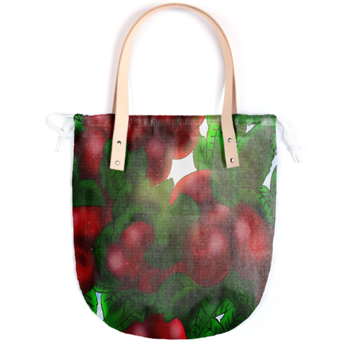 The Summer tote features a round bottom shape small inside patch pocket and tan or black leather handles.