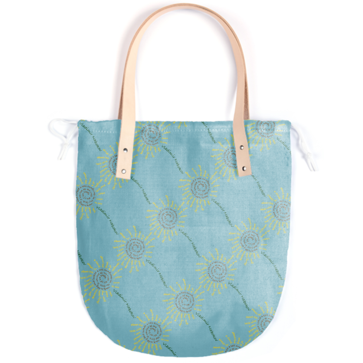 The Summer tote features a round bottom shape small inside patch pocket and tan or black leather handles.