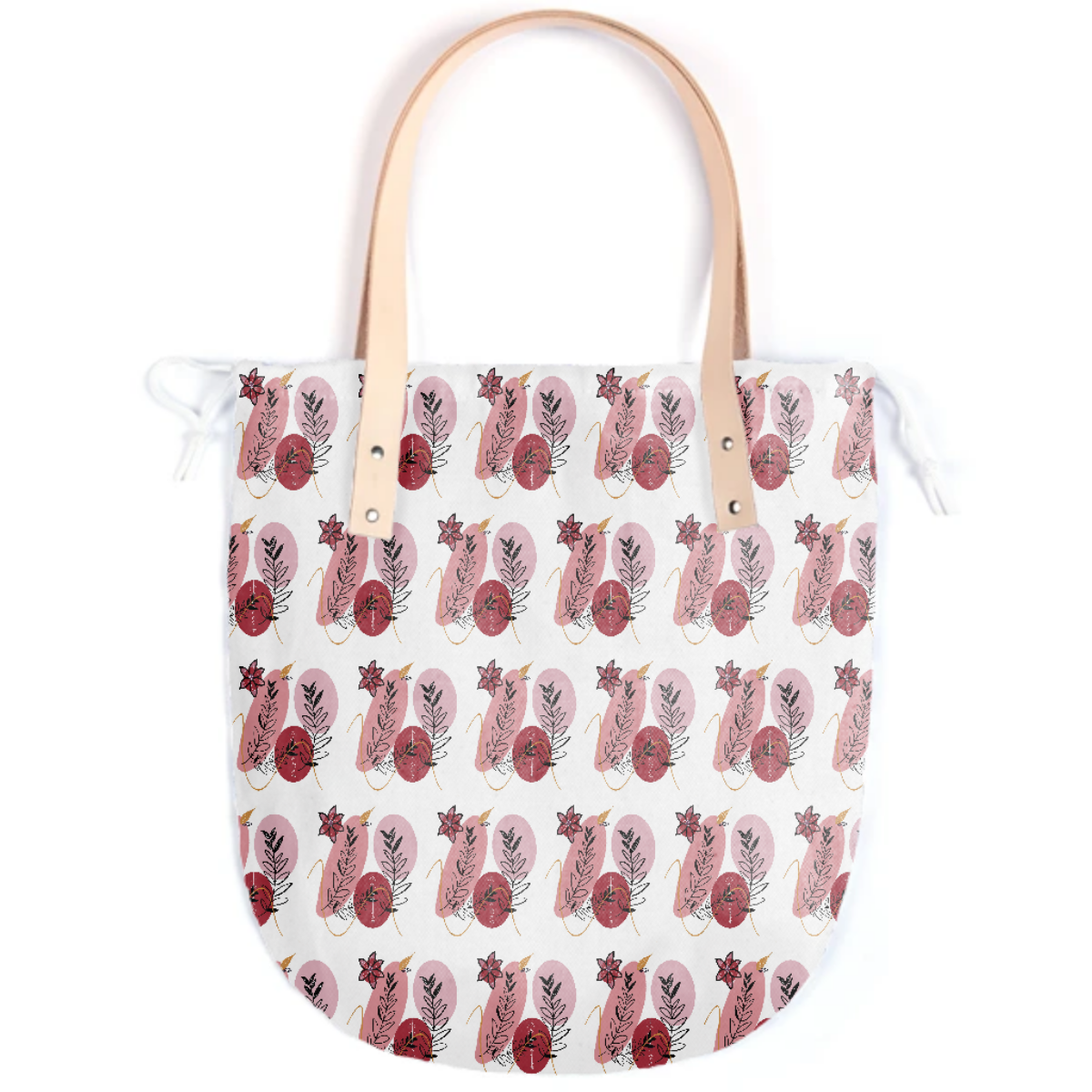 The Summer tote features a round bottom shape small inside patch pocket and tan or black leather handles.