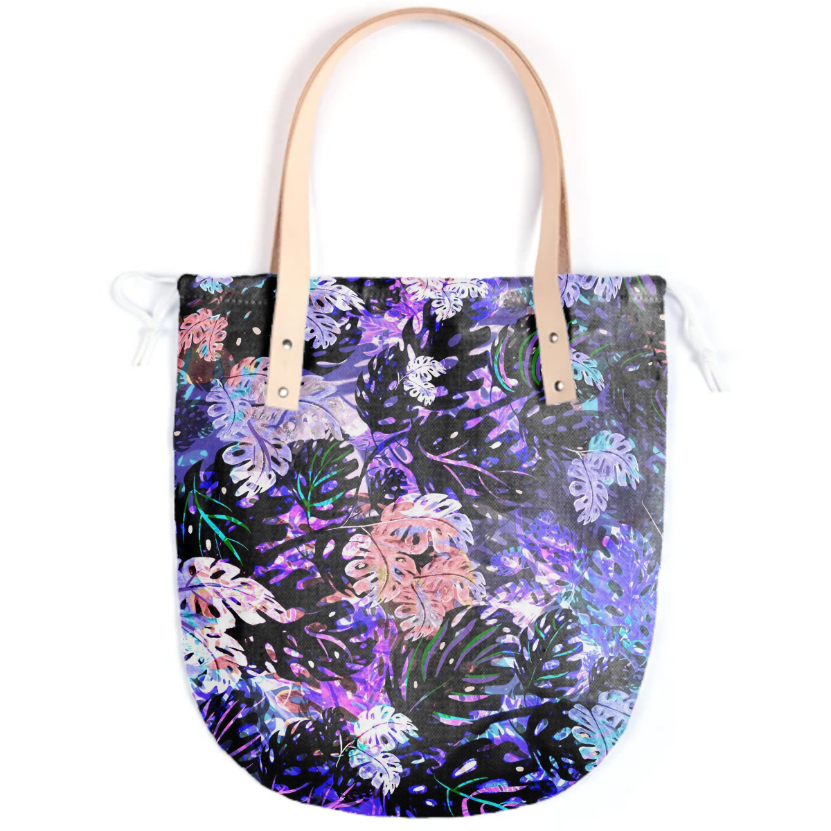 The Summer tote features a round bottom shape small inside patch pocket and tan or black leather handles.