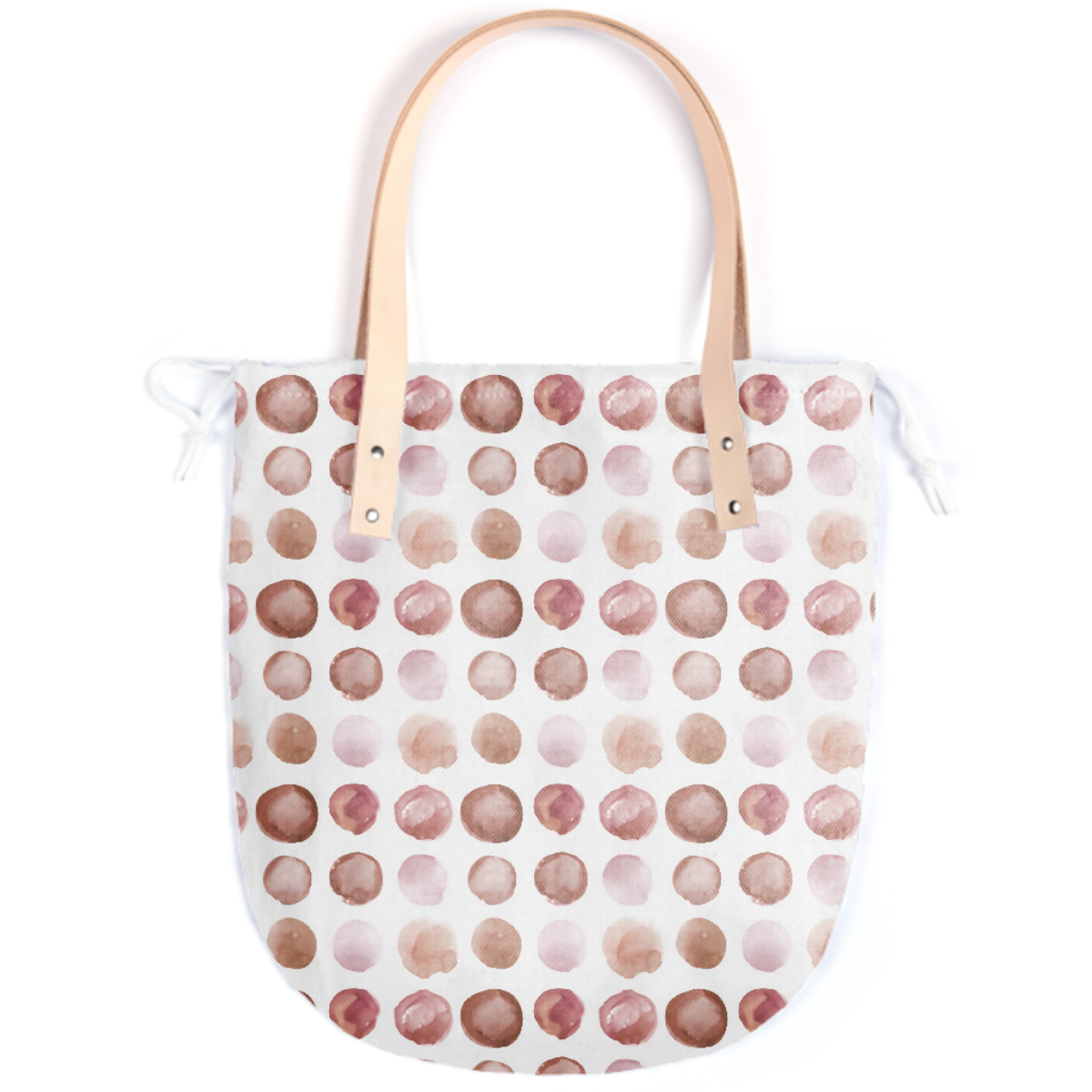 The Summer tote features a round bottom shape small inside patch pocket and tan or black leather handles.