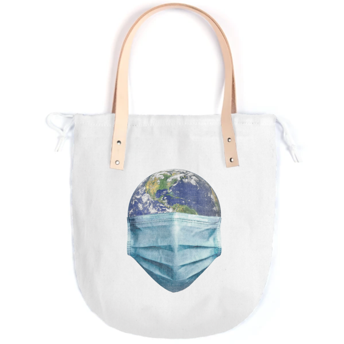 The Summer tote features a round bottom shape small inside patch pocket and tan or black leather handles.