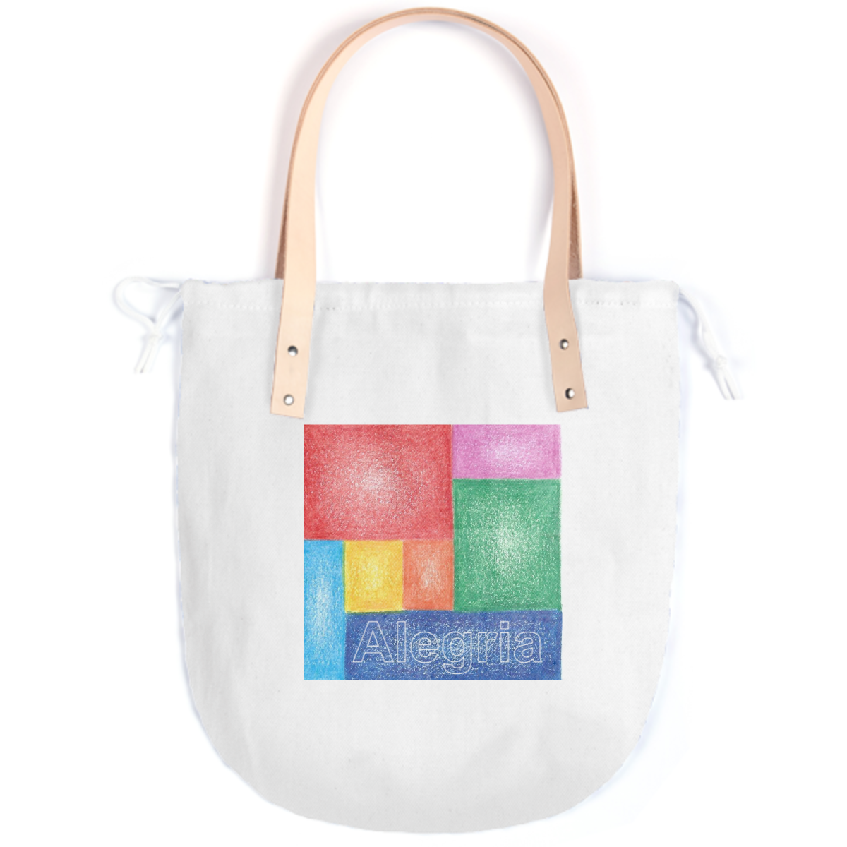 The Summer tote features a round bottom shape small inside patch pocket and tan or black leather handles.