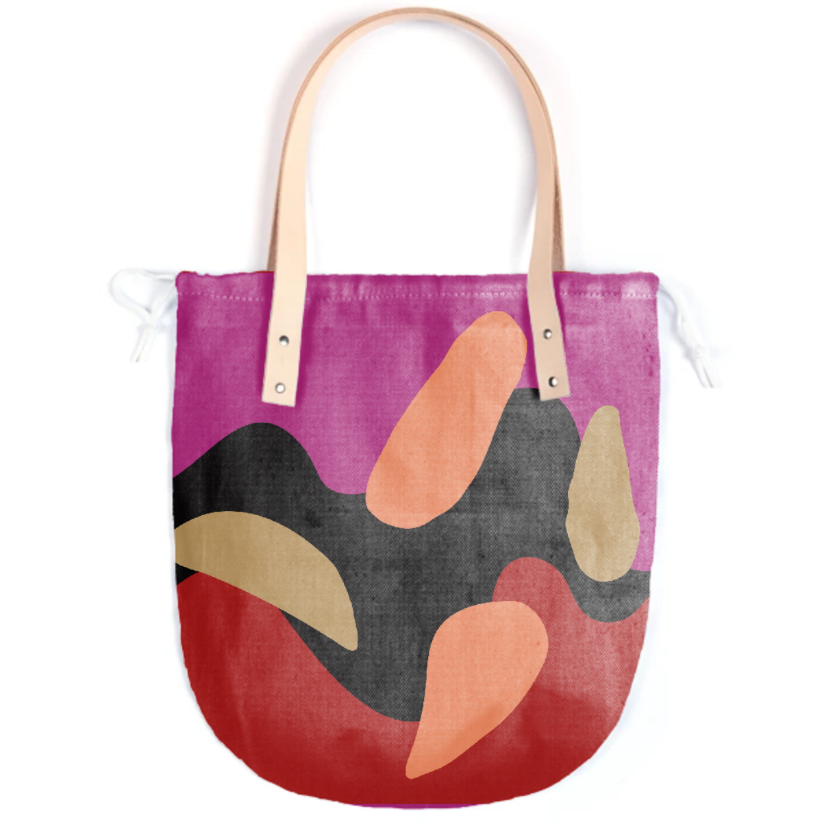 The Summer tote features a round bottom shape small inside patch pocket and tan or black leather handles.