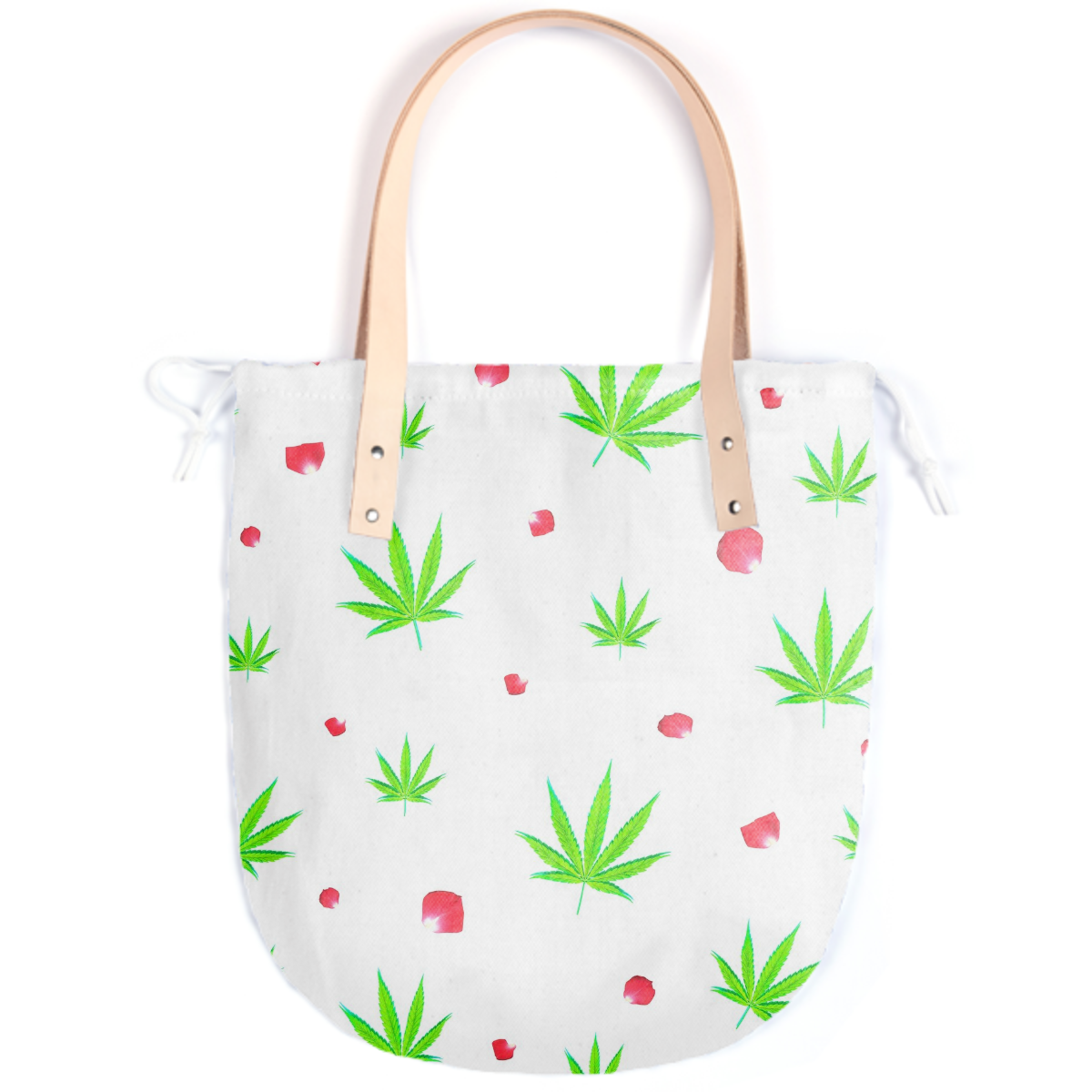 The Summer tote features a round bottom shape small inside patch pocket and tan or black leather handles.