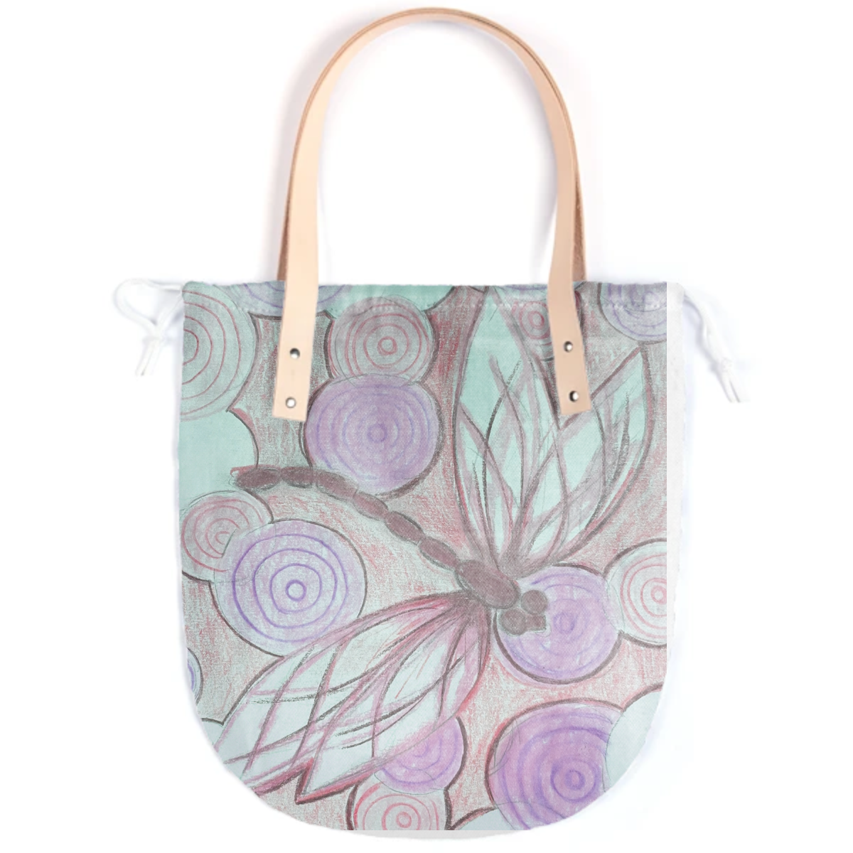The Summer tote features a round bottom shape small inside patch pocket and tan or black leather handles.