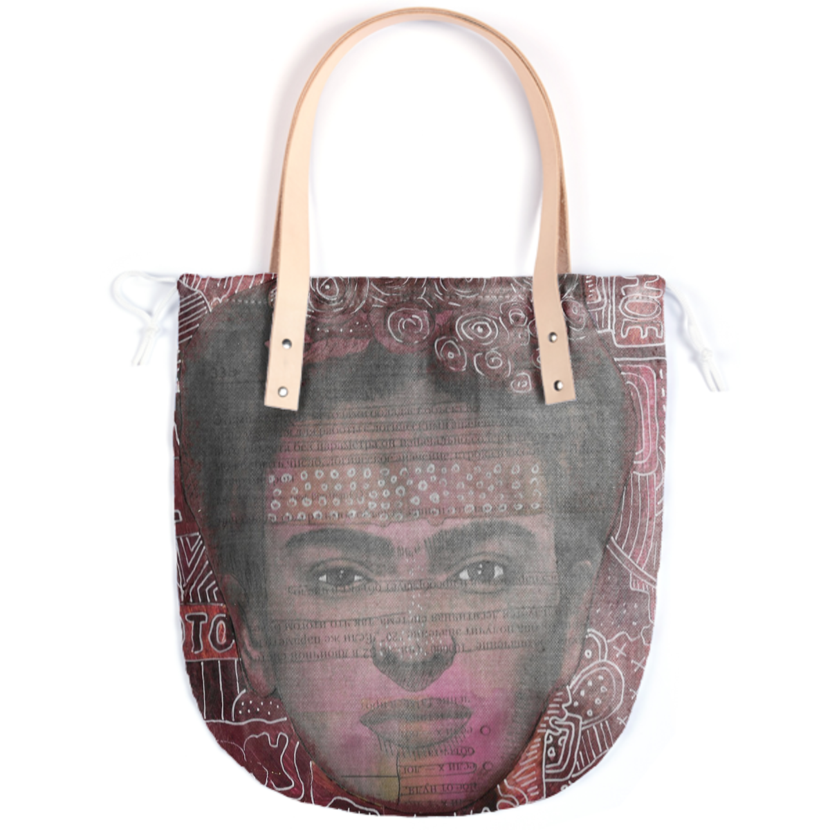 The Summer tote features a round bottom shape small inside patch pocket and tan or black leather handles.