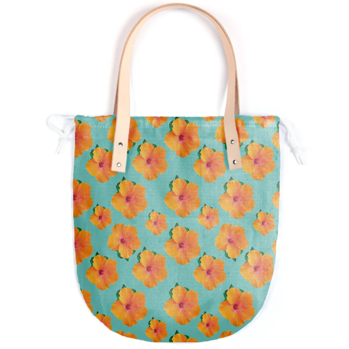 The Summer tote features a round bottom shape small inside patch pocket and tan or black leather handles.