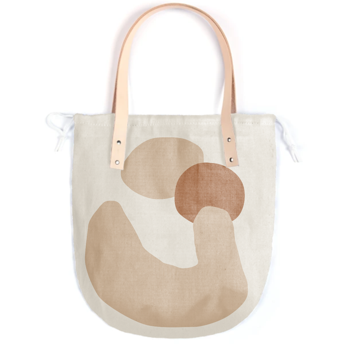The Summer tote features a round bottom shape small inside patch pocket and tan or black leather handles.