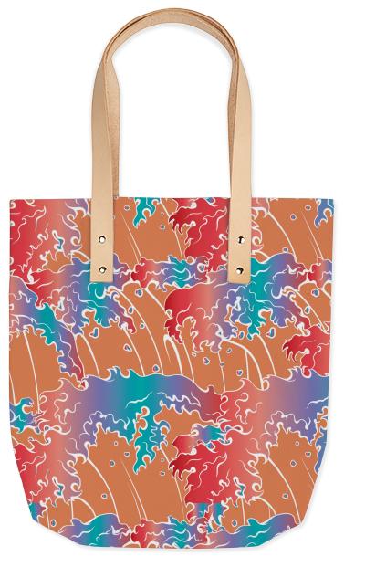 The Summer tote features a round bottom shape small inside patch pocket and tan or black leather handles.