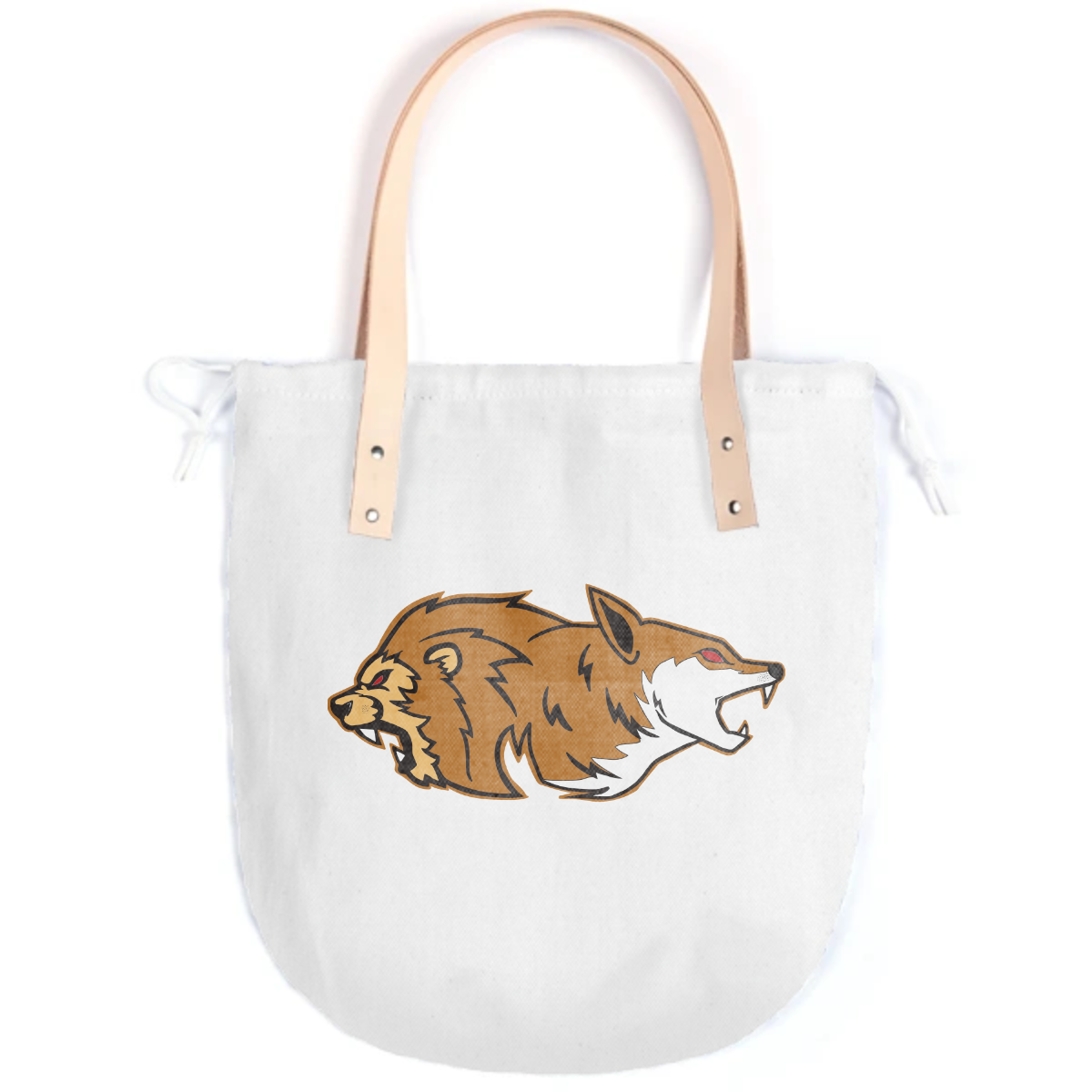 The Summer tote features a round bottom shape small inside patch pocket and tan or black leather handles.