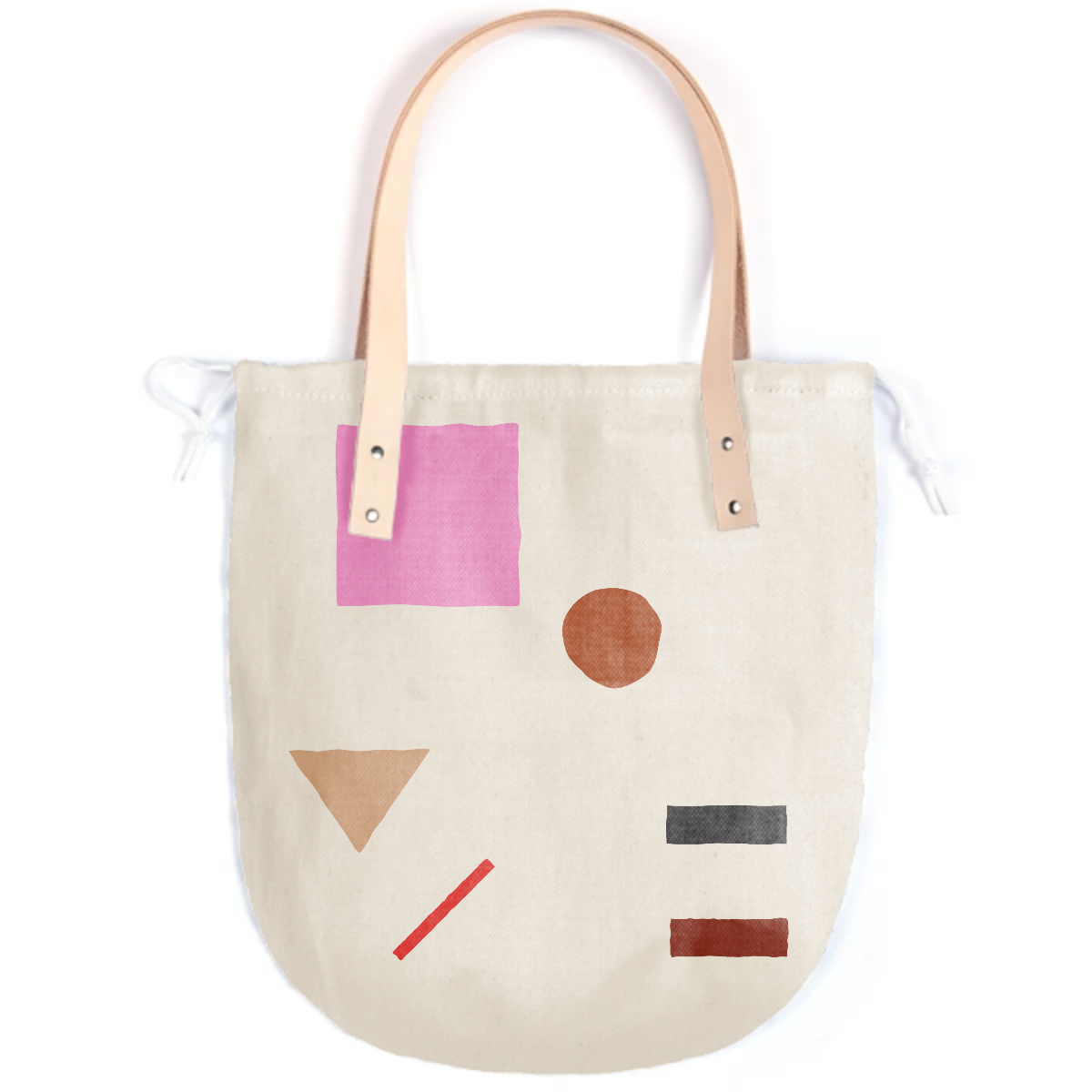 The Summer tote features a round bottom shape small inside patch pocket and tan or black leather handles.