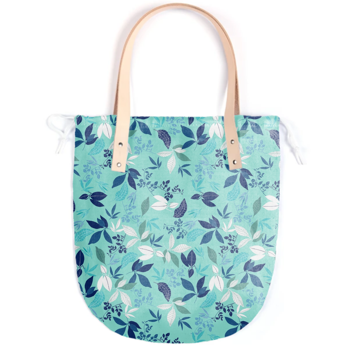 The Summer tote features a round bottom shape small inside patch pocket and tan or black leather handles.