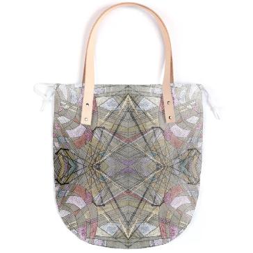 The Summer tote features a round bottom shape small inside patch pocket and tan or black leather handles.