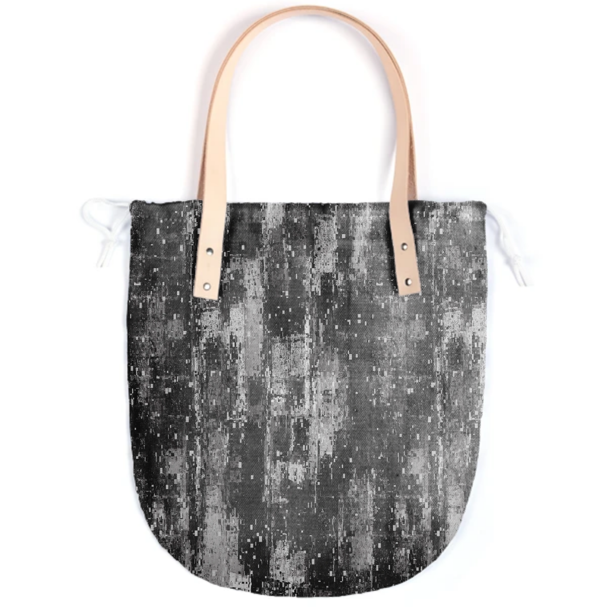 The Summer tote features a round bottom shape small inside patch pocket and tan or black leather handles.