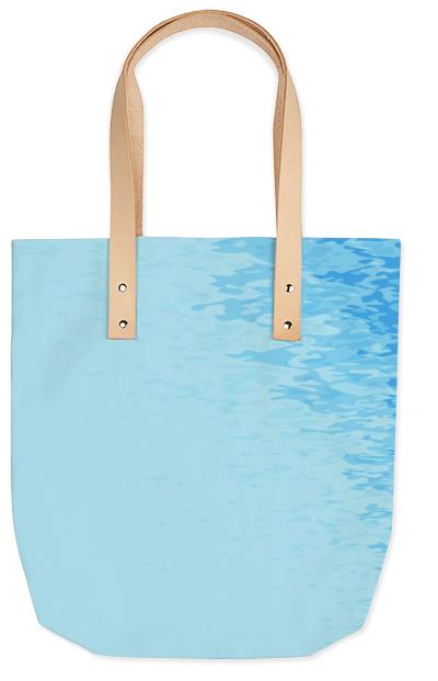 The Summer tote features a round bottom shape small inside patch pocket and tan or black leather handles.