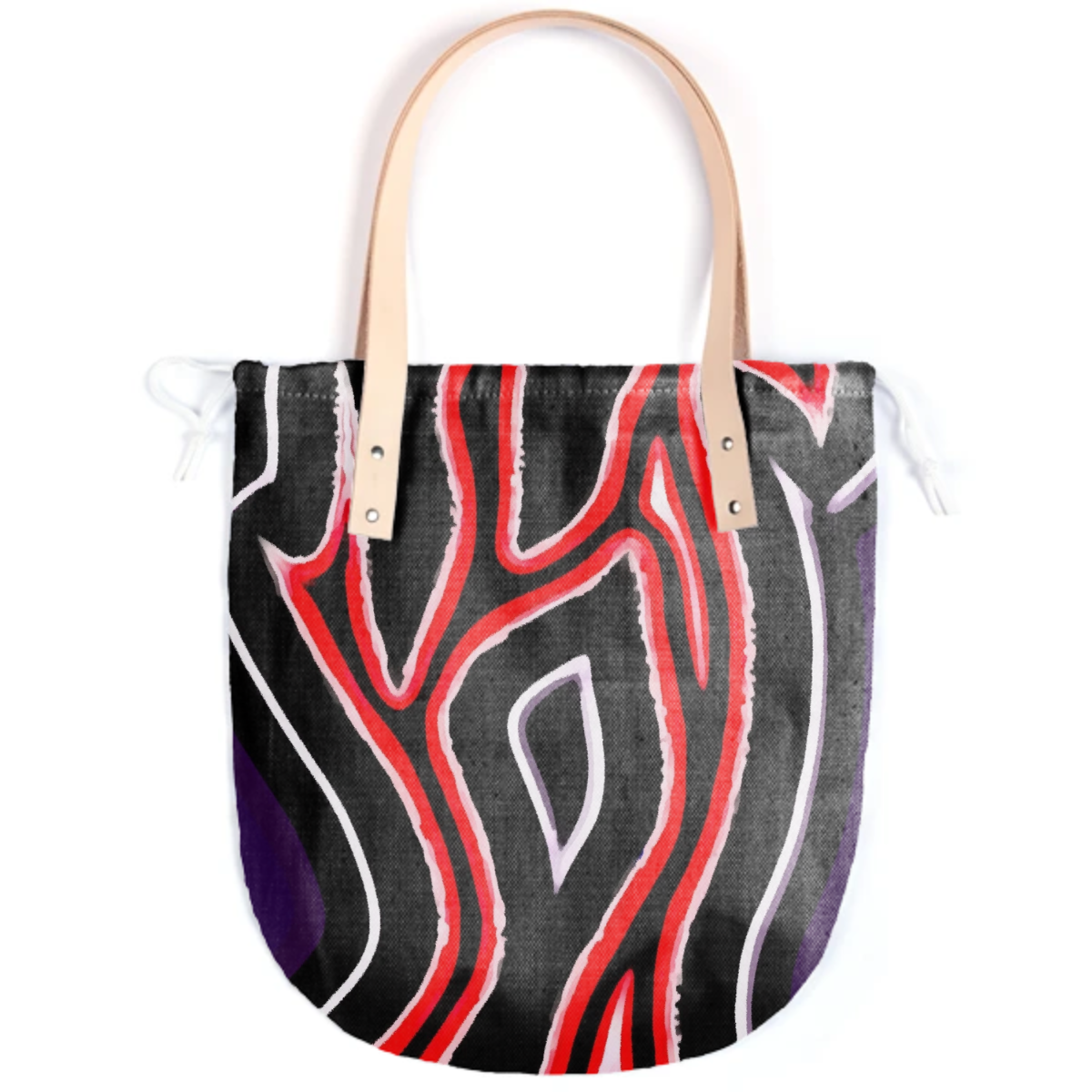 The Summer tote features a round bottom shape small inside patch pocket and tan or black leather handles.