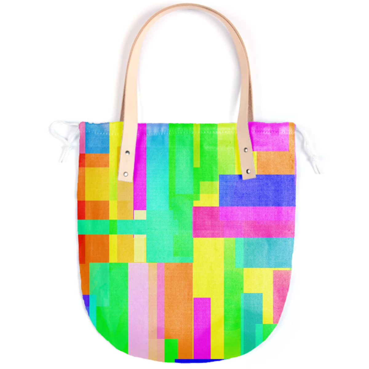 The Summer tote features a round bottom shape small inside patch pocket and tan or black leather handles.