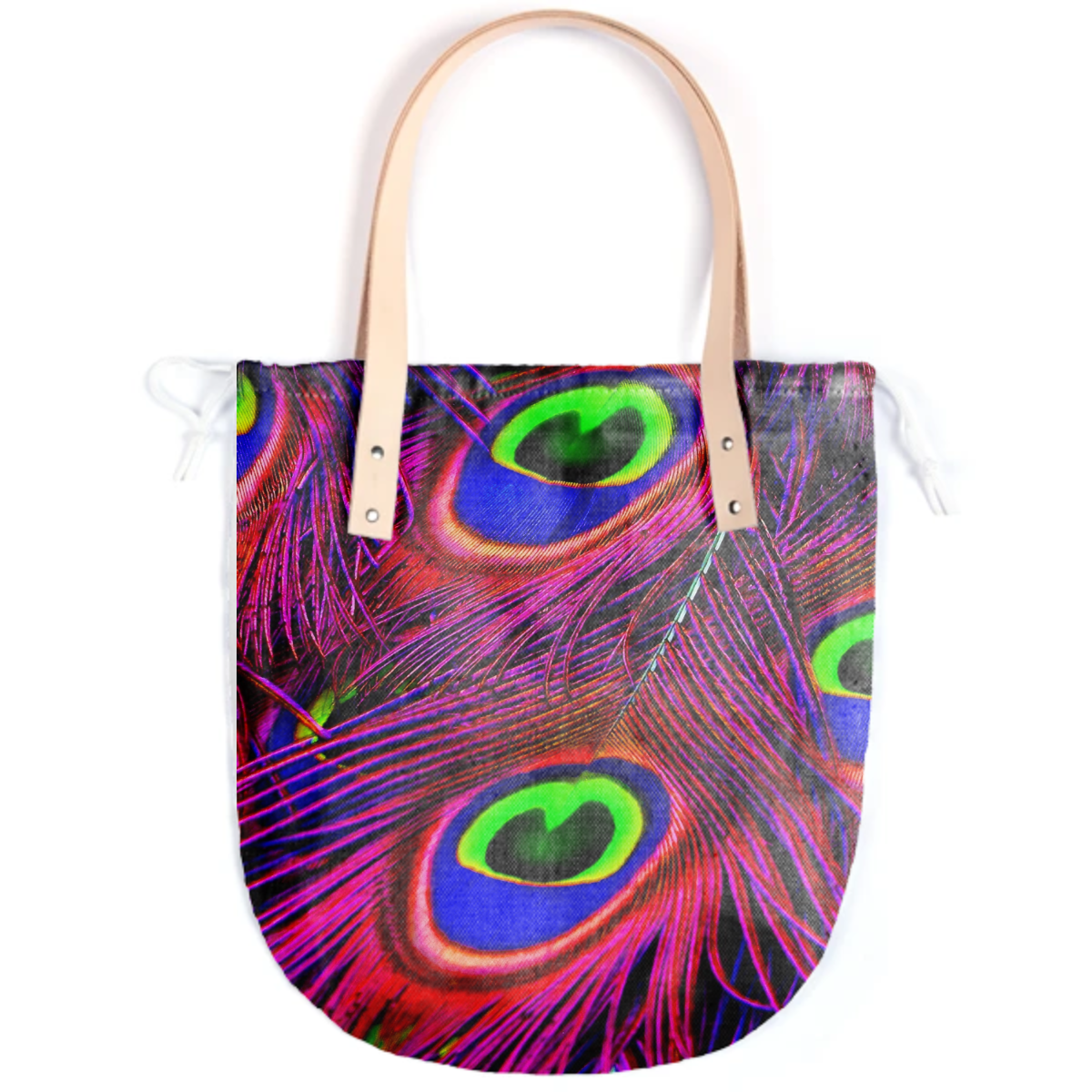 The Summer tote features a round bottom shape small inside patch pocket and tan or black leather handles.