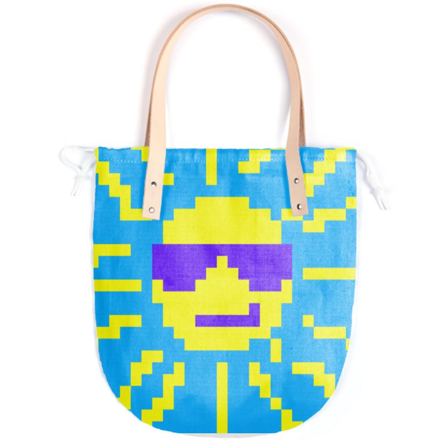 The Summer tote features a round bottom shape small inside patch pocket and tan or black leather handles.