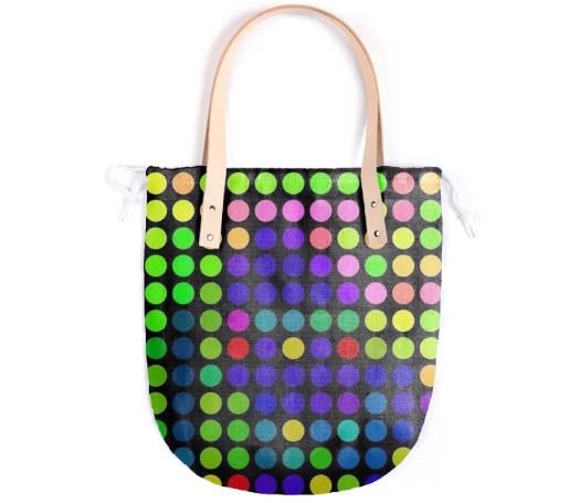 The Summer tote features a round bottom shape small inside patch pocket and tan or black leather handles.