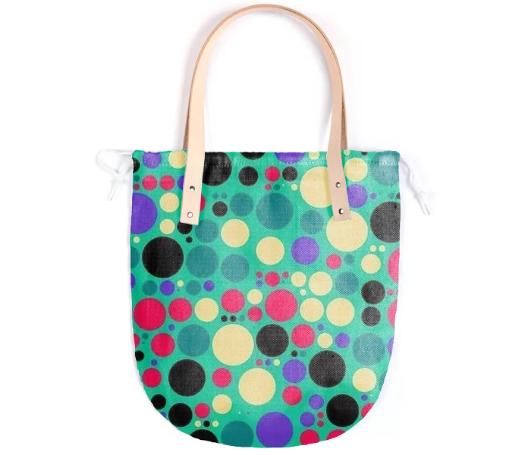The Summer tote features a round bottom shape small inside patch pocket and tan or black leather handles.