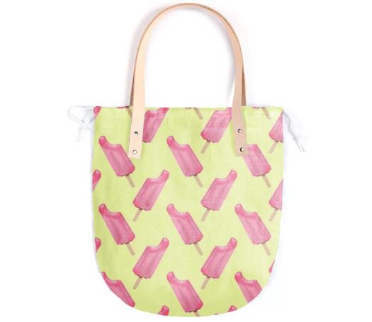 The Summer tote features a round bottom shape small inside patch pocket and tan or black leather handles.