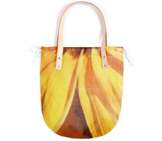 The Summer tote features a round bottom shape small inside patch pocket and tan or black leather handles.