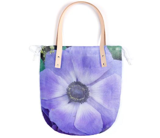 The Summer tote features a round bottom shape small inside patch pocket and tan or black leather handles.