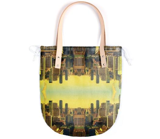 The Summer tote features a round bottom shape small inside patch pocket and tan or black leather handles.