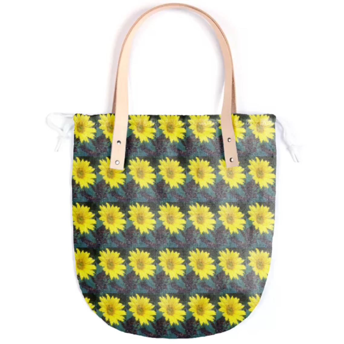 The Summer tote features a round bottom shape small inside patch pocket and tan or black leather handles.