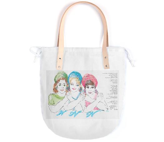 The Summer tote features a round bottom shape small inside patch pocket and tan or black leather handles.