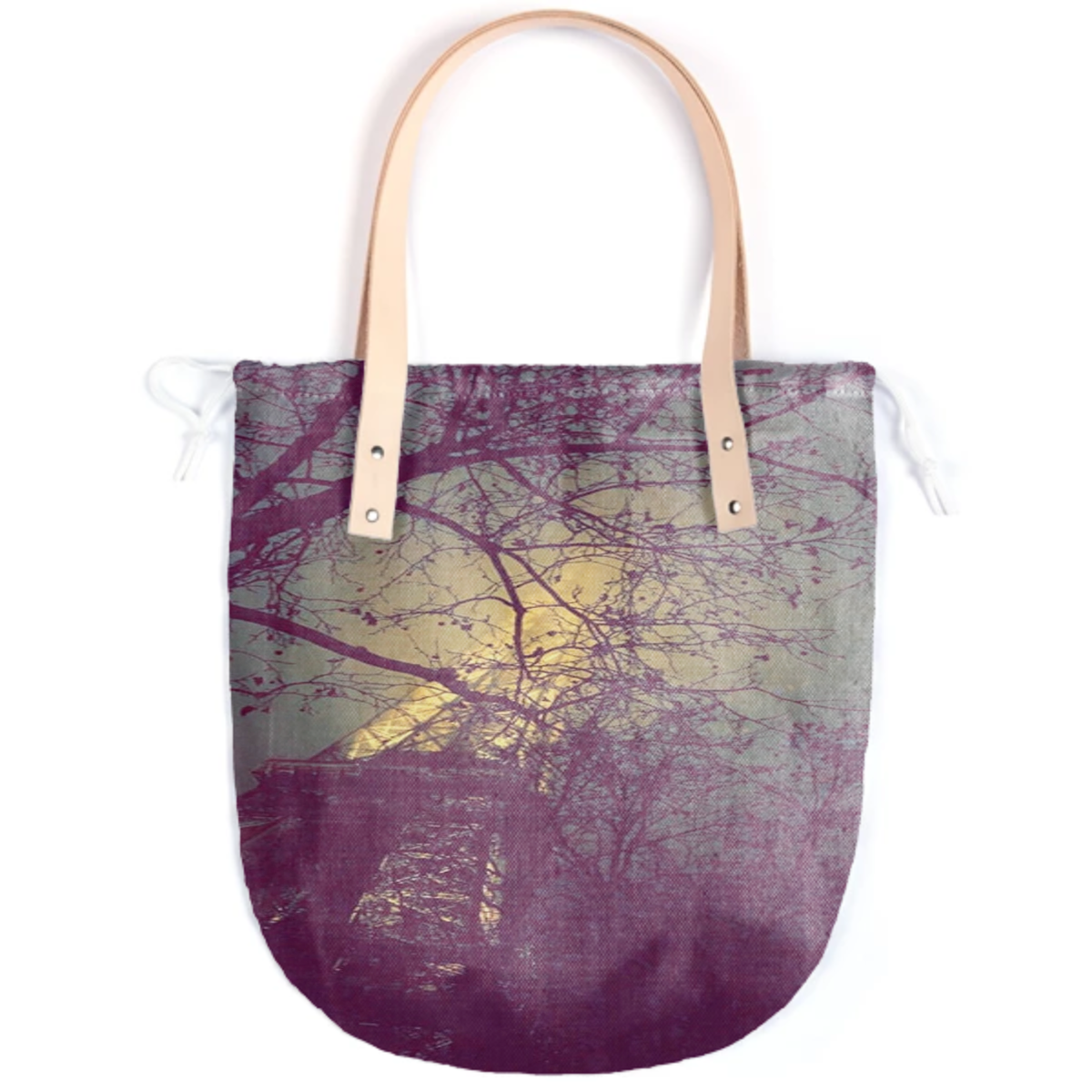 The Summer tote features a round bottom shape small inside patch pocket and tan or black leather handles.