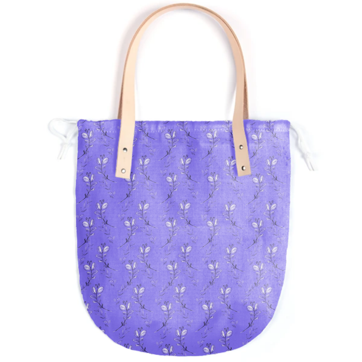 The Summer tote features a round bottom shape small inside patch pocket and tan or black leather handles.