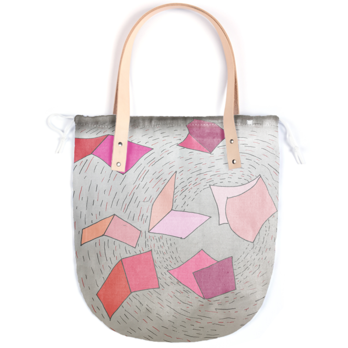 The Summer tote features a round bottom shape small inside patch pocket and tan or black leather handles.