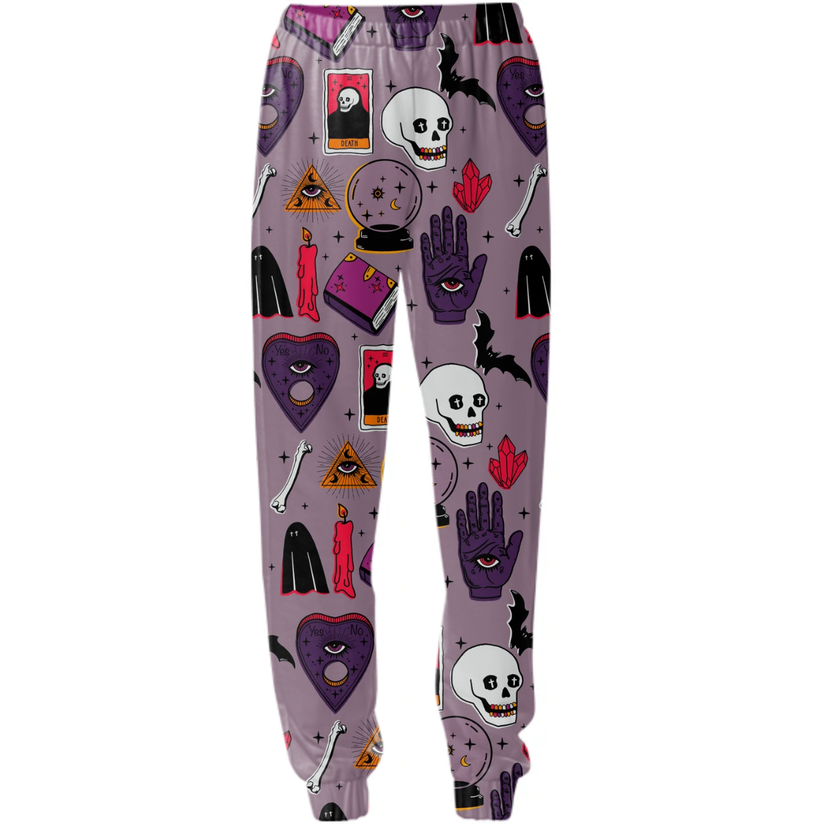 Thin jogger fit sweatpants with drawstring elastic waistband side seam pockets and elastic cuffs.