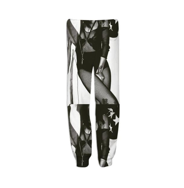 Thin jogger fit sweatpants with drawstring elastic waistband side seam pockets and elastic cuffs.